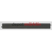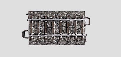 Length 64.3 mm / 2-9/16. This track is the same length as the parallel track spacing for the wide radius turnouts and wide angle crossings.