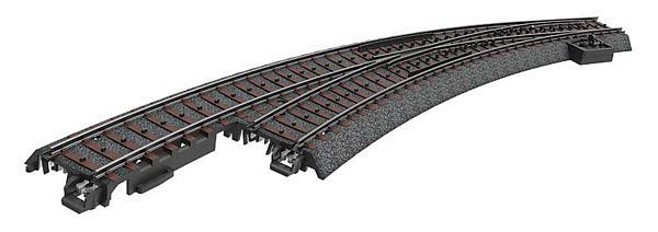 Inner curve: R3 = 515 mm / 20-1/4" / 30°. Outer curve: 30° with a parallel curve spacing of 64 mm / 2-1/16". Hand lever included. Two (2) each 24315 track are required on the inner and outer curve of the turnout. A roadbed piece to fit here is included. The 74491 electric turnout mechanism, the 74461 digital decoder, and the 74470 turnout lanterns can be installed on this turnout.