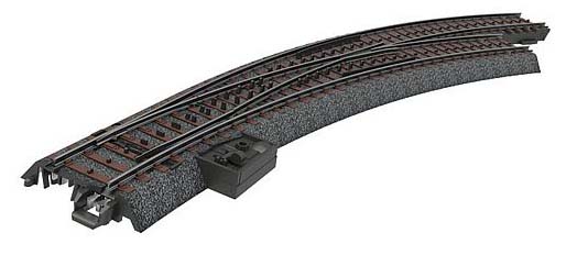 Inner curve: R3 = 515 mm / 20-1/4" / 30°. Outer curve: 30° with a parallel curve spacing of 64 mm / 2-1/16". Hand lever included. Two (2) each 24315 track are required on the inner and outer curve of the turnout. A roadbed piece to fit here is included. The 74491 electric turnout mechanism, the 74461 digital decoder, and the 74470 turnout lanterns can be installed on this turnout.